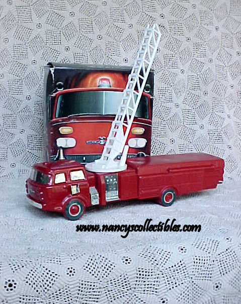 This is a 3.5 fl.oz. clear glass painted red fire truck bottle that held "Wild Country" After Shave. The white plastic hook and ladder center section and 6 oz. rear red plastic section held talc. It is in excellent condition; no chips, cracks, or repairs. The label is intact and in excellent con- dition. This bottle is dated 1972-1973. It measures 10" long. The glass bottle is marked "Avon,Wild Country After Shave,3.5 fl. oz.". The talc section is marked "Avon,The Red Sentinal,Wild Country Talc, 6 oz.". It is in its original box.
