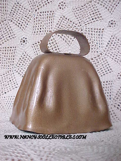 A copper painted cow bell. It is in excellent condition. It measures 3-1/4" tall; 3" wide.