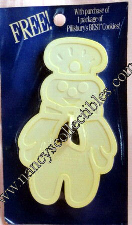 A free with purchase of one package of Pillsbury's BEST cookies. It appears to be hard plastic and is in like new condition. There are directions on the back of the card. It is marked on the front of the doughboy"TPC CO 1989 REG US PAT OFFICE". Mark on the back of the card is "1989 The Pillsbury Company". It measures 4-1/4" tall. It is in excellent condition.