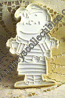 Peanuts characters pre-date the Peanuts Gang cookie cutters made by Hallmark in the 1970's. The molds used are copyrighted and apparently Hallmark acquired the copyright for them. These early cookie cutters are marked United Feature Syndicate, Inc. which is the same company that produced the Peanuts Comic Strip.A white hard plastic cookie cutter of the Peanut character "Linus" It is marked "United Feature Syndicate Inc.". It measures 4-1/4" tall. Linus is holding a string of Christmas lights. It is in excellent condition.