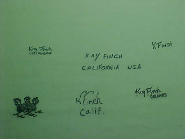some of the marks by Kay Finch Ceramics.