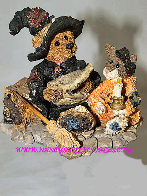 This is a Boyds Bear & Friends figurine. It is "Emma The Witchy Bear". It was retired in 1998. It is a bear dressed as a witch reading an invitation to the "Bear Witched Ball". There is a cat sitting next to her holding a candle and her broom on the floor. Her book of "Good Spells and Hexes" is behind her. She is in excellent con- dition; no chips, cracks, or repairs. It measures 3" tall, 3" wide. It is marked on the bottom "Boyds Bears & Friends, Emma...The Witchy Bear,With Mirth and Laughter, Let Old Wrinkles Come,Edition/pc #10E/593, style #2269,1995, The Boyds Bear Collection, LTD". It is in its original box and the certificate of authenticity is included.