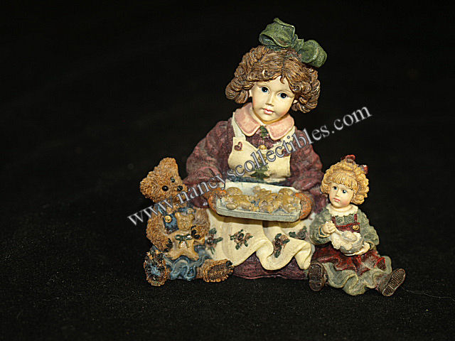 This is a Yesterdays' Child Dollstone Collection of the Boyd Collection Ltd. It is "Debbie...The Bakers". It was retired in 1997. It is a young girl holding a cookie pan of gingerbread men with a little girl at her side with a mixing bowl and a teddy bear on her other side. It is in excellent condition; no chips, cracks, or repairs. It measures 3-3/4" tall, 3-3/4" wide. It is marked on the bottom "Yesterdays' Child, Dollstone Collection, Remember This - That Very Little Is Needed To Make A Happy Life - Marcus Arelius, Home Again Series No. 4, Edition/pc #9E/2878, Style 3510, Jean w/Eliot & Debbie...The Bakers, 1996, The Boyds Collection Ltd". It is not in its box.