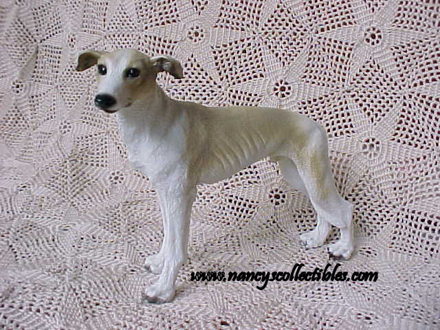 This is a beautifully detailed Greyhound by Conversation Concepts. He is white with tan markings. He is in excellent condition; no chips, cracks, or repairs. He measures 3-3/4" tall and 4-1/2" long. He is marked "1992". Although he is not marked, his identification number is #CC-DF540.