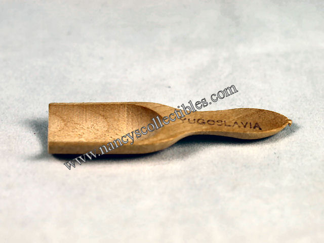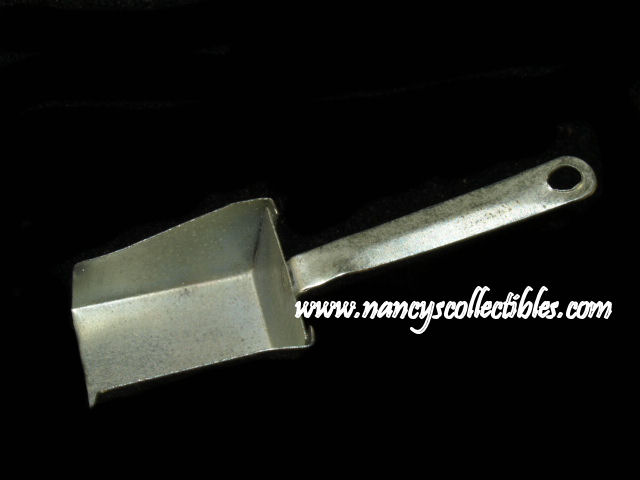 This is a miniature metal scoop. It mea- sures 2" long (including handle), 1/2" wide. It is in excellent condition. It is unmarked.