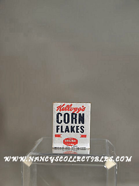 This is a miniature of a Kellogg's Corn Flakes box. It is in excellent condition. It states on the label, "Kellogg's Corn Flakes,The Original". It measures 1" tall; 3/4" wide. A great addition to your dollhouse kitchen.