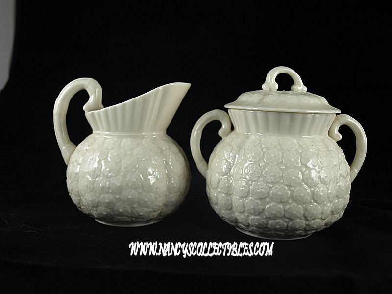 This is a beautiful Lenox creamer & sugar set in the "Hawthorne" pattern. It is in excellent "like new" condition; no chips or cracks. It is ivory in color with a raised floral pattern. It is marked "Hawthorne, Reproduced from the First Lenox Tea Set,Designed in 1889,Limited Edition,Lenox" with the mark of Lenox "L" within a wreath. The sugar measures 4-1/2" tall, including lid; 4" wide. The creamer measures 4" tall; 4" wide. A great wedding gift for that special couple. This set is part of the Lenox tea set listed below. Therefore, if any of the pieces are purchased, it will void the remaining listings.
