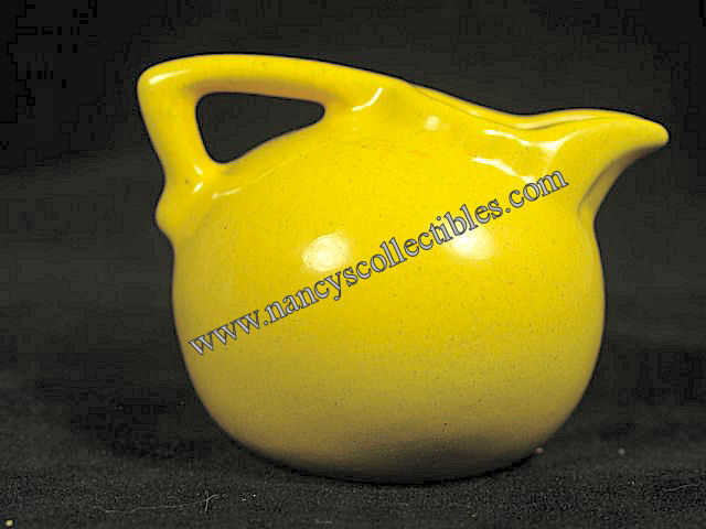 A vintage mini creamer made by Frankoma. It is in excellent condition. It is bright yellow and measures 2-1/2" tall, 3-1/2" wide from handle to spout. It is marked "Frankoma 553". It is dated 1942-1957.