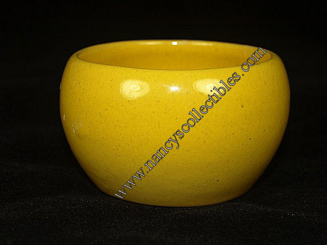 A vintage 6 ounce bean pot from the Frankoma "Westwind" dinnerware. It is in excellent condition. It is bright yellow and measures 2-1/2" tall; 3-1/2" wide. It is marked "BP, Frankoma". It is dated 1972-1975.