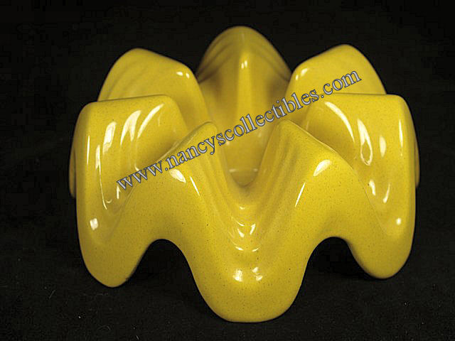 A vintage warming stand made by Frankoma in the "Westwind" pattern. It is in excellent condition. It is autumn yellow and measures 3-1/2" tall, 8-1/4" wide. There is a place for a votive candle in the center to keep your carafe or casserole dish warm. It is marked "Frankoma WAI". It is dated 1967.