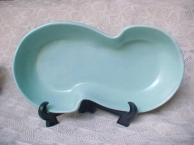 A nice planter/dish by Haeger. It has a matte finish in mint green. It is in a "s"-shape. It is in very good condition; no cracks, hairlines, or repairs. There is one small chip on the top outer edge. Looks like it has never been used. It measures 10-1/4” long, 2" tall, 5-1/4” wide. It is marked on the bottom "Haeger,USA".