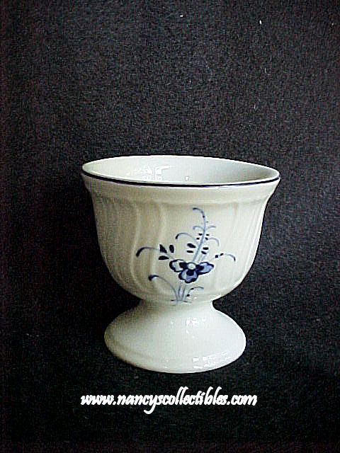This is an eggcup by Villeroy & Boch in the discontinued pattern "Vieux Luxembourg". It is also known by the names of "Vieux Lux", "Alt Lux", or "Alt Luxembourg" It is becoming very hard to find. This is the first pattern Villeroy & Boch made in 1748. It is in excellent condition; no chips, cracks, hairlines, or repairs. It is white with a blue floral design. It measures 2" tall; 2" in diameter at the top; and 1-1/2" in diameter at the base. It is marked on the bottom "Depius 1748, Villeroy & Boch,Luxembourg" .