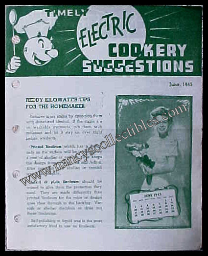 This is a leaflet by Kelvinator. It is titled "Kelvinator Wartime User's Guide for Electric Ranges". It includes "...ten simple things you can do to give your electric range the care it should have". There is no date of publishing, but it obviously is from the 40's due to "wartime" being used in the title. It is in excellent con- dition; no tears, stains, or markings. A great collectible from the time of WWII.
