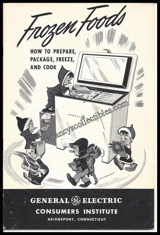 A book by General Electric on the preparation, pack- aging, freezing and cooking foods. It covers fruit, vegetables, meats, poultry, games, fish, dairy products, prepared foods, fruit juices and purees. It is marked "General Electric Company, Appliance and Merchandise Department, Bridgeport 2, Connecticut, 2-26, Rev.3-48, Printed in U.S.A.". It is in excellent condition; all pages are intact, no stains or tears. This is a 31-page book.