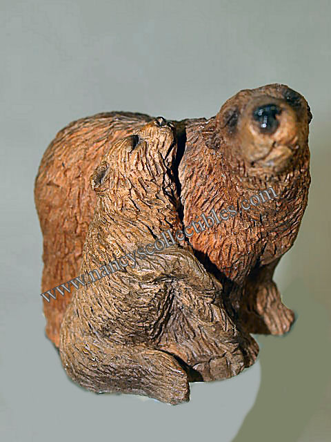 This is a very hard to find piece. It is a Stone Critter Littles polar bear pair. It is a mother polar bear with her cub. She is standing next to her cub. They are brown with a black nose with their eyes closed. They are in excellent condition; no chips or repairs. It measures 2" tall, 1-3/4" long. The label is missing. It is marked "1994 UDC".