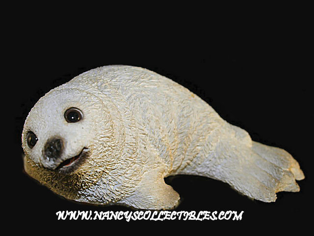This is a Stone Critter figurine named Baby Harp Seal. It is a white baby seal with black eyes. It is in ex- cellent condition; no chips or repairs. It measures 3-1/4" tall, 1-3/4" long. It is stamped "1992,UDC". The label states "Stone Critter,SCB053,Seal Baby Harp Seal".