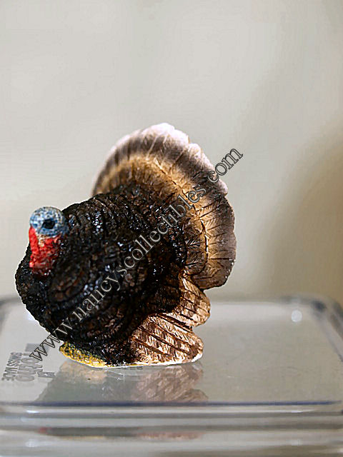 This is a Stone Critters Littles "Turkey" by United Design Corp. He is in excellent condition; no chips or repairs. He is dark brown, tan, and white with his head blue and red neck. He measures 1-4/4" tall; 1-1/2" wide. The label is marked "SCL-186, Turkey". It is stamped "1993, UDC". It is in a Stone Critter box.