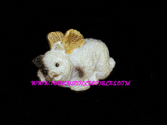 This is a black and white "Winged Pig", a Stone Critters piece by United Design Corp. He is in excellent condition; no chips or repairs. He measures 3/4" tall; 1" wide; 1" long. The label has been removed by the previous owner. It is marked "1997, UDC". The number for this figurine is not known.
