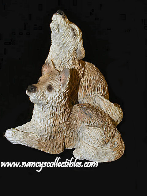 This is a "Wolf Pair", a Stone Critters piece by United Design Corp. It is in excellent condition; no chips or re- pairs. It is a pair of wolves sitting next to each other. It measures 2-1/2" tall; 2" wide. The label is missing. The American flag label is attached. It is stamped "1994,UDC". The identification number is #SCL209.