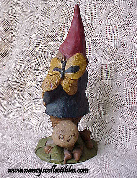 A Cairn Studio artwork of Tim Wolfe's Tracks collection. This is "Sylvia". For the story of Tom Clark Gnome "Sylvia" click here The number for this piece is "38", dated 1991. It is in excellent, like-new condition. He measures 3" tall, 2-1/2" wide. The Certificate of Authenticity is not included.