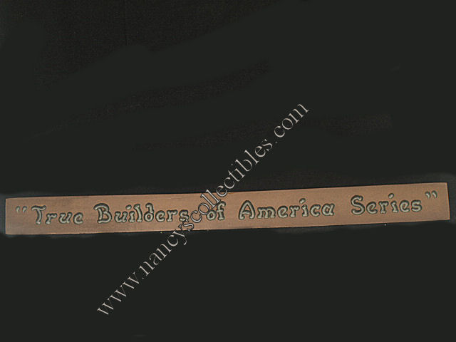 A Cairn Studio artwork of Tom Clark's Gnomes collection. This is "True Builders of America Series" sign. This is a sign for Tom Clark's True Builders of America Series Gnomes. It measures 1-1/2" tall and 14-7/8" lonb. It is in excellent, like-new condition.
