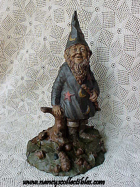 A Cairn Studio artwork of Tom Clark's Gnomes collection. This is "The Wiz". For the story of Tom Clark Gnome "The Wiz" click here The number for this piece is "71", dated 1983. It is in excellent, like-new condition. He measures 8-1/2" tall and 4-3/4" in diameter. The Certificate of Authenticity from Cairn Studio, Ltd. is included.